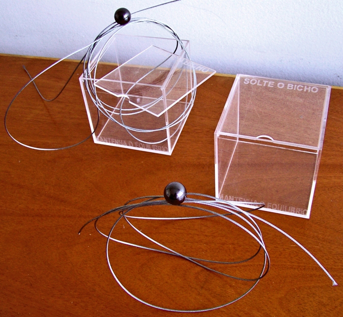 ímã+cabo de aço+caixa de acrílico